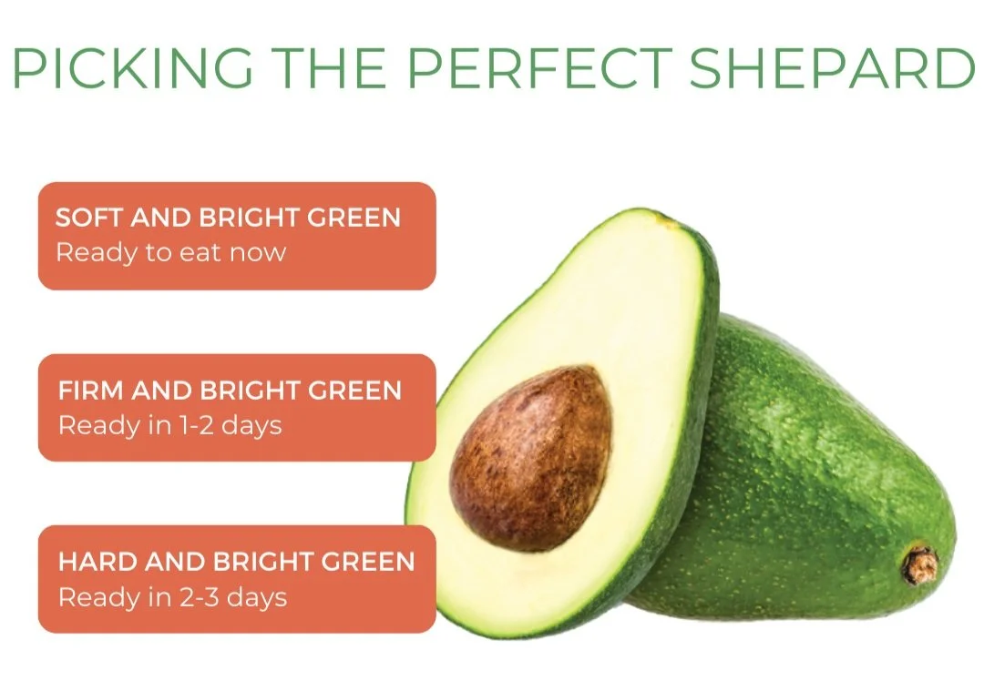 Shepard avocados are characterised by their smooth green skin and nutty buttery flavours. They are only grown commercially in Queensland and are available from approximately February to April. Shepard avocados represent approximately 15% of total domestic production.